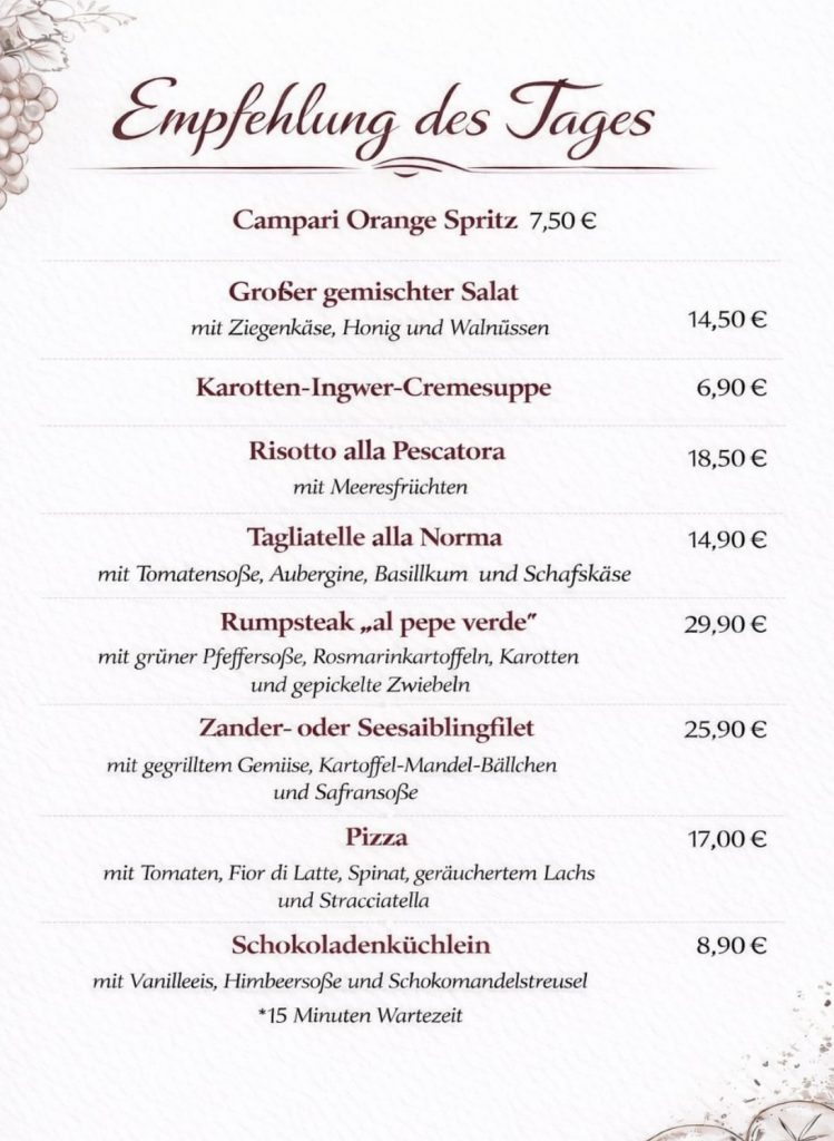 Willkommen in unserer italienischen Gastronomie, wo authentische Gerichte, erlesene Weine und ein einladendes Ambiente zu einem unvergesslichen Erlebnis verschmelzen. Tauchen Sie ein in ein Stück Italien – frisch, gemütlich und genussvoll.